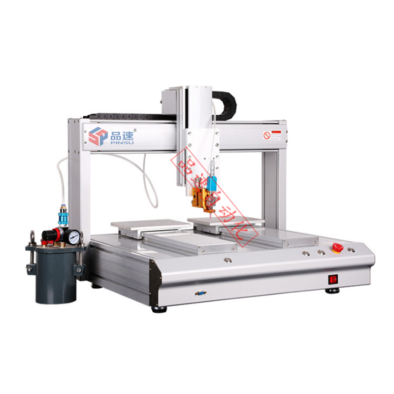品速科技四轴自动点胶机也叫双Y轴自动点胶机,双Y轴工作大大增加点胶效率;出胶系统根据胶水特性和实际需求进行配置,满足客户不同点胶需求