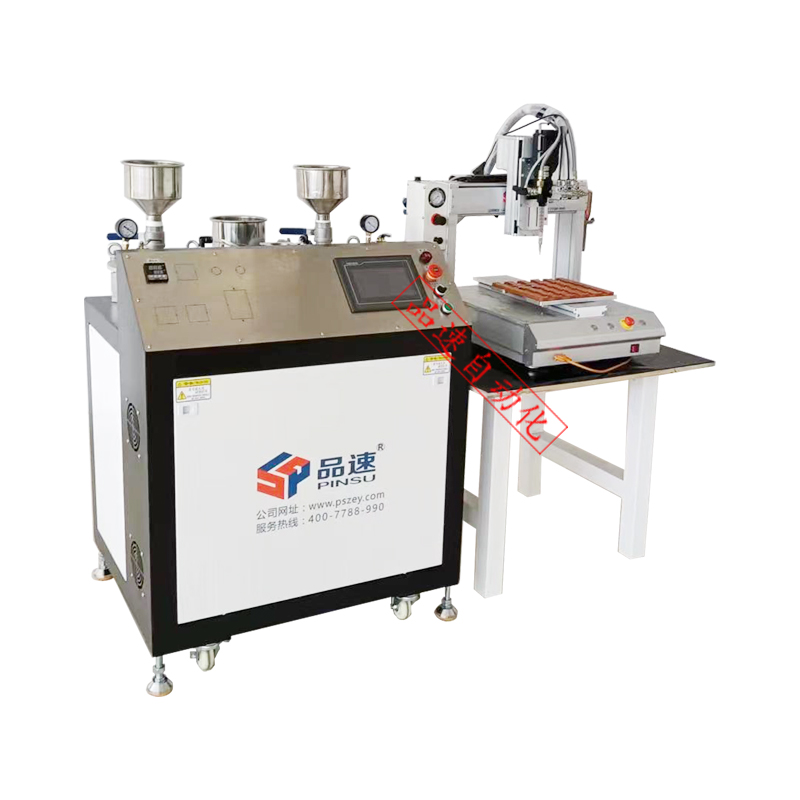 桌面式自动灌胶机主要由桌面运行平台,自动配胶机组成,适用1:1-10:1固定比例可调环氧树脂AB胶,聚氨酯PU胶,硅胶等灌胶。