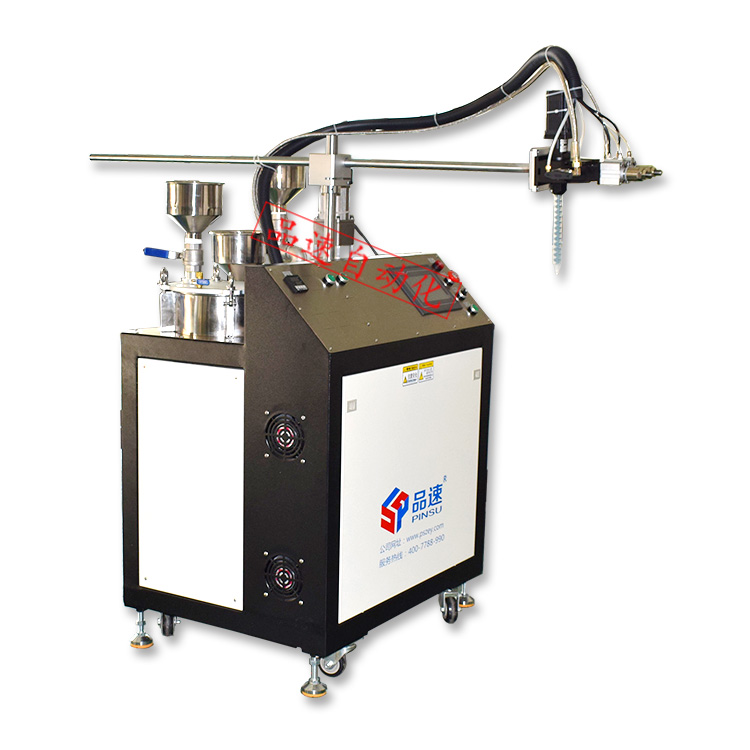 PS-PJ220自动配胶机,由品速科技自研,专用于双组份AB胶水精确配比,定量出胶,配胶精度±2%。PS-PJ220自动配胶机兼容自动化生产线或独立使用.