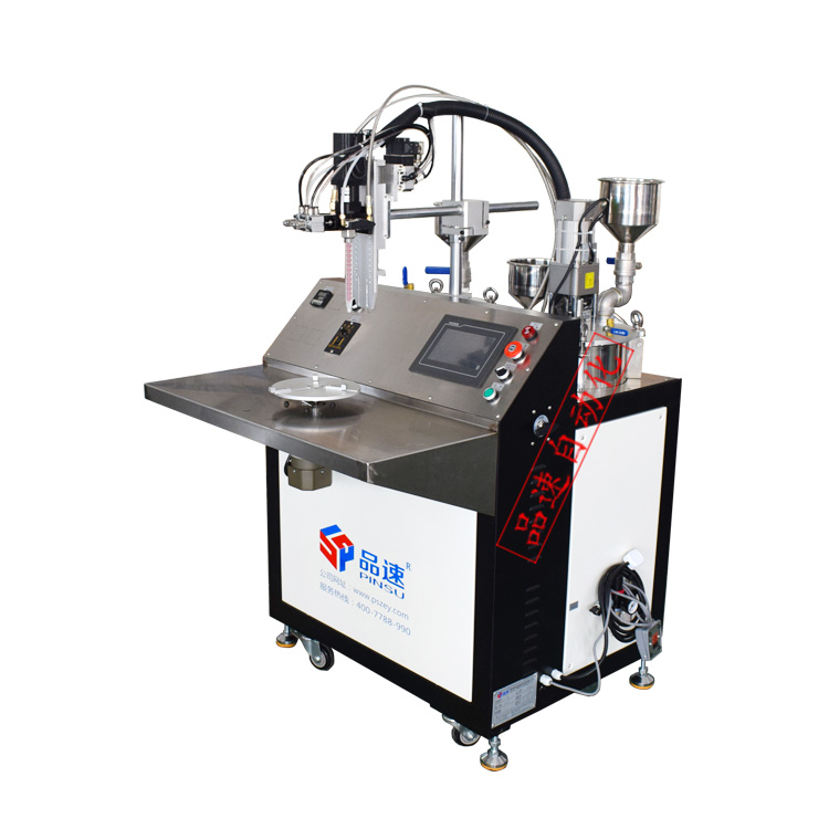 PS-PJ220F单工位转盘自动打胶机应用胶水有环氧树脂ab胶、ab硅胶、聚氨酯ab胶等;